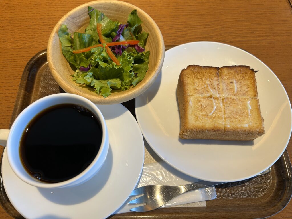 今日は、サラダ&厚切りバタートーストとコーヒーのセットです。神の恵みに感謝します。
