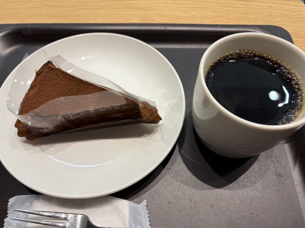 今日のおともは、スターバックスのチョコレートタルトと、ハウスブレンドです。